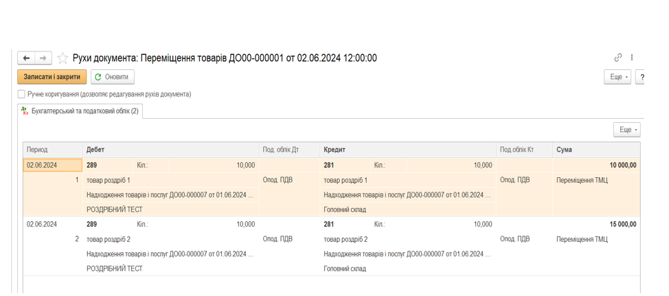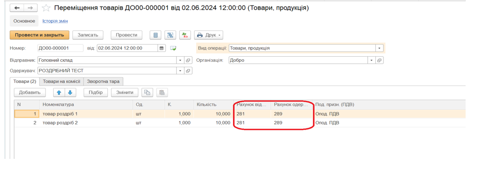 Документ «Переміщення товару»
