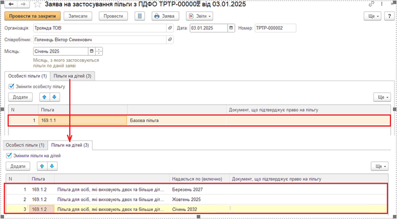 Налоговая социальная льгота - особенности назначения в конфигурации "BAS Зарплата та управління персоналом", редакція 3.0