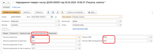 Д-т 6442 К-т 6441 - 2000,00 грн. (НДС, налоговый кредит, оплата, первое событие)